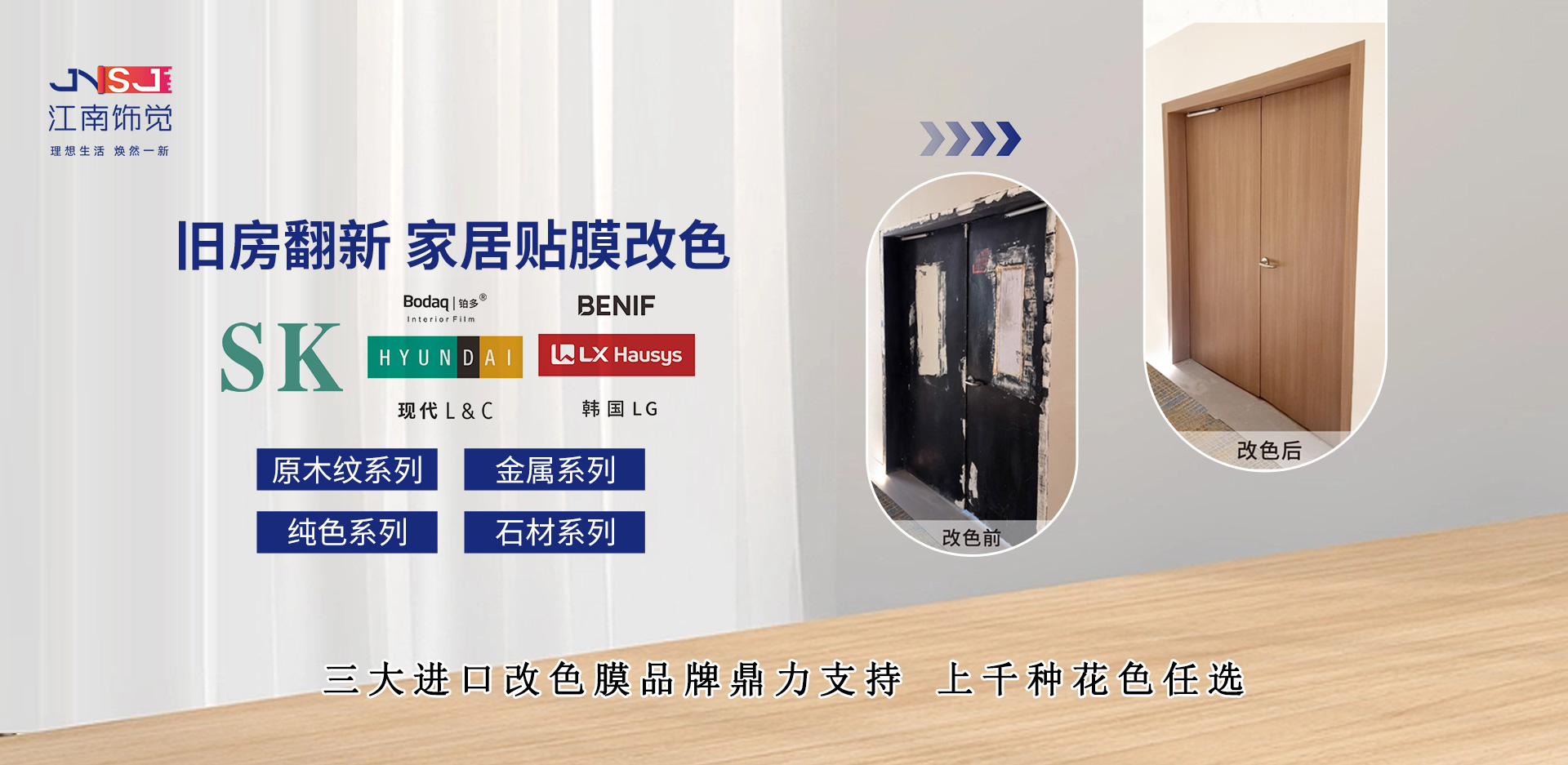 木制品翻新改色 金屬門窗翻新改色 瓷磚翻新改色 裝飾貼膜翻新改色